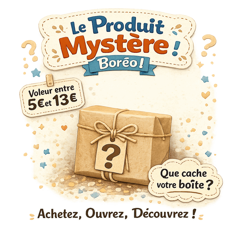 Votre produit mystère sera soigneusement emballé à la main dans un emballage adapté, prêt à être offert ou simplement à s’offrir. Que ce soit pour compléter une commande, faire un petit cadeau original ou simplement vous laisser tenter par la surprise, Boréo vous invite à jouer le jeu : ouvrez, découvrez… et laissez la magie opérer !